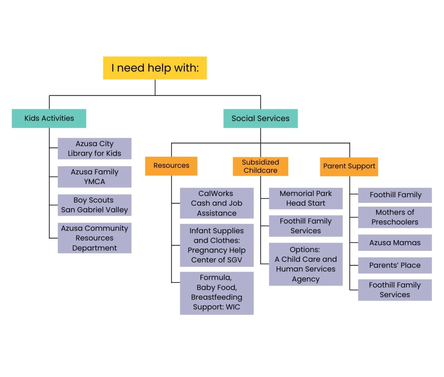 If you are looking for resources for babies and kids, including affordable childcare, food, and nutrition education, or support for moms, you’ve come to the right place. The pathway and video below will connect you to the organizations appropriate for your needs. Love Azusa cares about your access to support that will improve your well-being and help you thrive. For contact information and detailed descriptions of resources, scroll down to the bottom of this page.