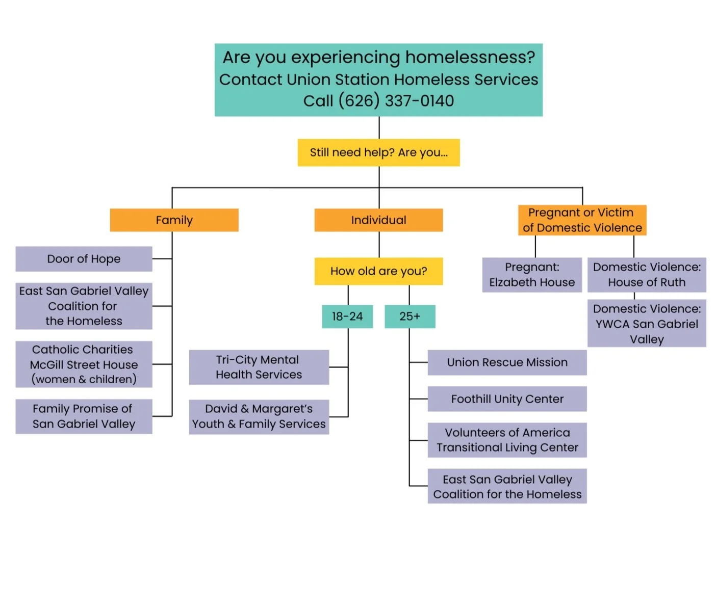 If you are looking for housing assistance as an individual, family, expectant mother, or person experiencing domestic violence, this pathway can help. Below you will find the different steps you can take to determine which resource to contact for housing services. Love Azusa cares about your access to support that will improve your well-being and help you thrive. For contact information, a detailed description of resources, and a video guide, scroll down to the bottom of this page. If you need in-person assistance, contact Azusa Library’s Neighborhood Connections at (626) 812-5100.