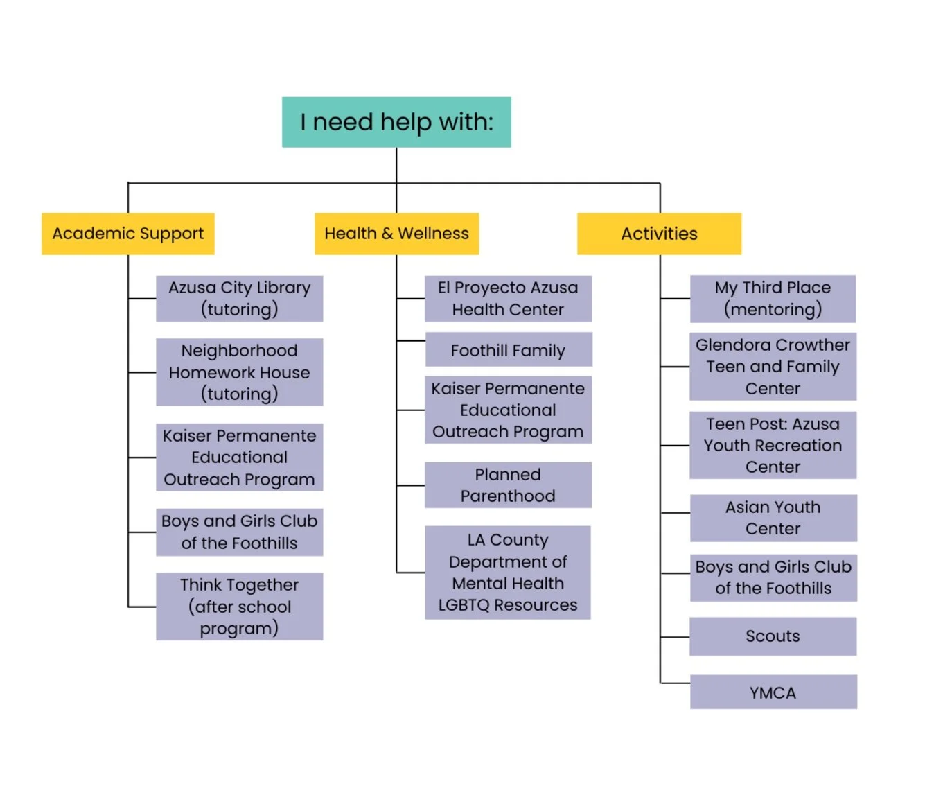 If you are looking for teen resources including academic support, health and wellness, and recreational opportunities, you've come to the right place. The pathway and video below will help connect you to the organizations appropriate for your needs. Love Azusa cares about your access to support that will enhance your well-being and help you thrive. For contact information and detailed descriptions of resources, scroll to the bottom of this page.